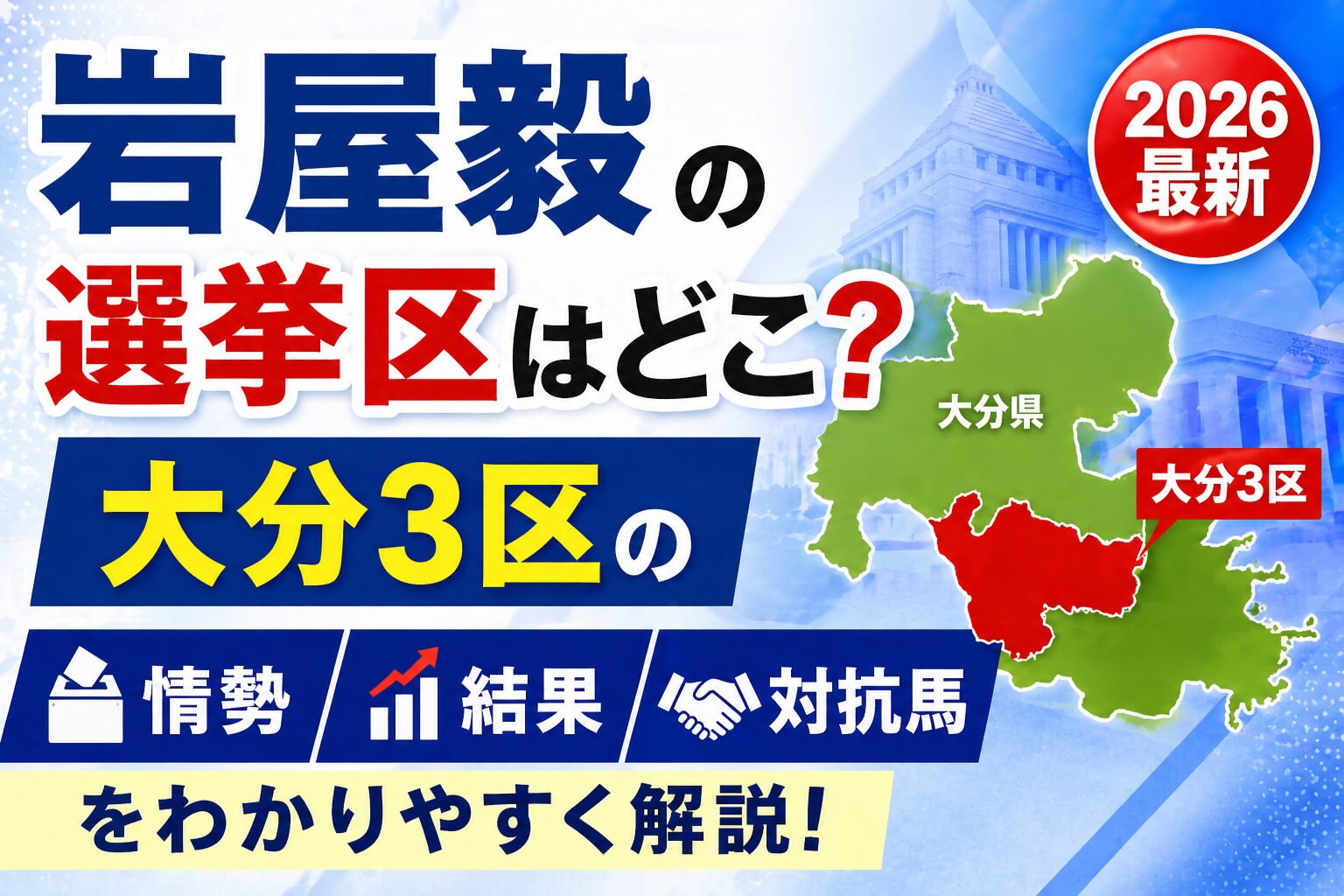 という疑問を持っている方に向けて、大分3区の情勢・選挙結果・対抗馬までわかりやすくまとめました。