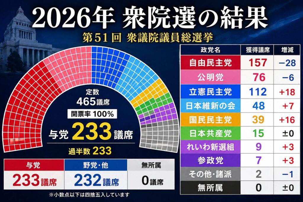 2026年衆院選の結果(第51回)